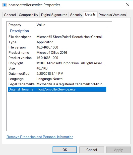 Path to Executable: C:\Program Files\Microsoft Office Servers\16.0\Search\HostController\hostcontrollerservice.exe